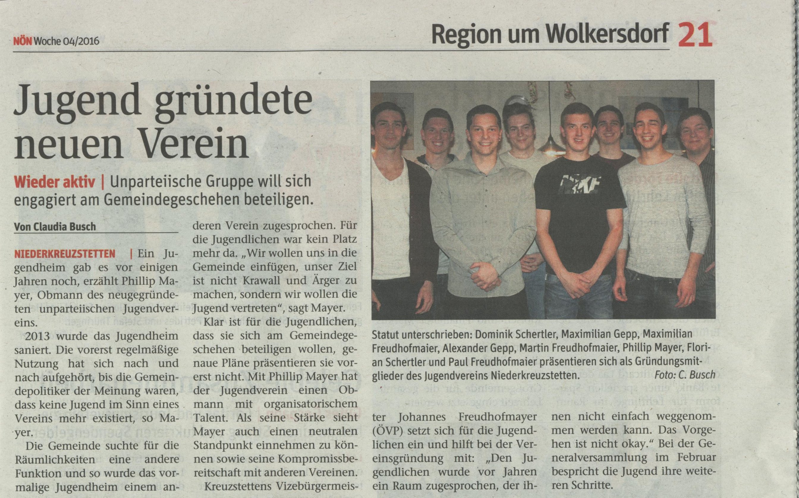 - bei der Besichtigung des Jugendheimes im Dezember 2015 wurde einvernehmlich vereinbart, dass der Bürgermeister die Jugendlichen Niederkreuzstettens zu Gesprächen einladen wird, um deren Wünsche und Vorstellungen und auch den aktuellen Bedarf nach einer eigenen Räumlichkeit zu klären – es gibt im Ort bereits eine gut eingeführte und aktive Jugend in der Katastralgemeinde Oberkreuzstetten.