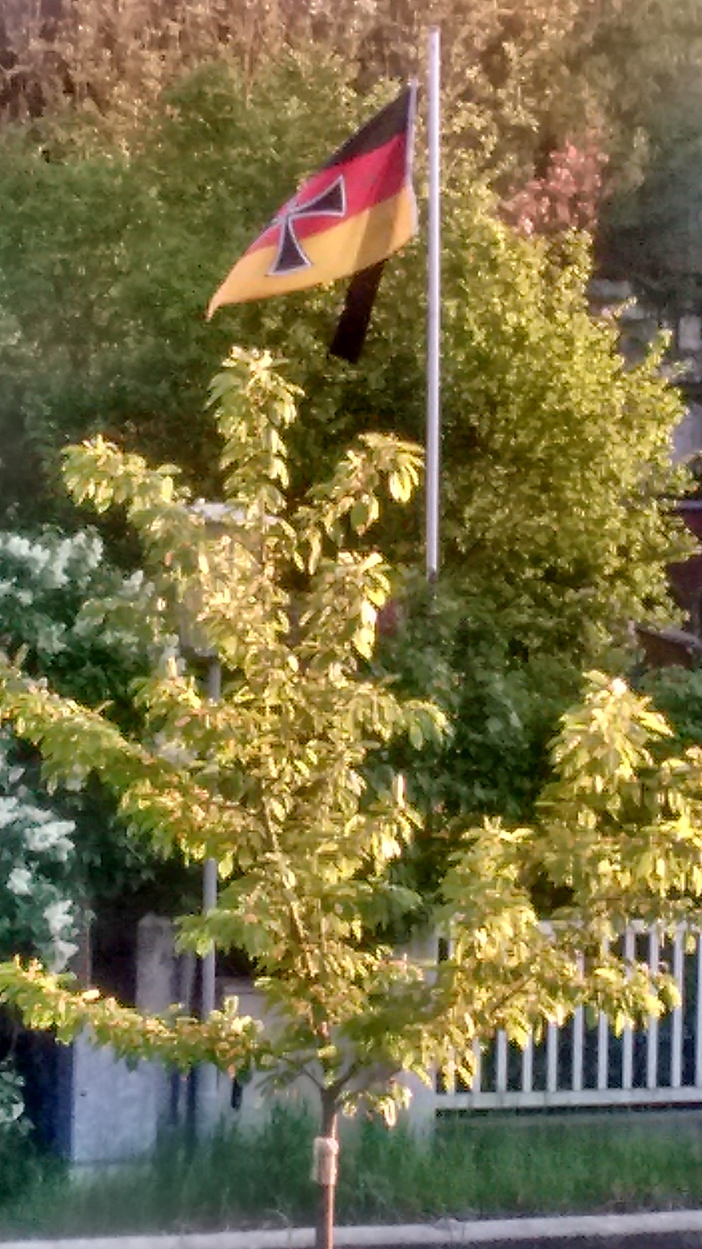 Aber offensichtlich freuen sich nicht alle… schon im Vorjahr war die deutsche Flagge bei der Familie XXX am 8. Mai gehisst (auf Halbmast mit Trauerflor), wer meine Nachbarn nicht kennt und bei dieser Aktion einen Kriegsveteranen vermutet, irrt sich: die Familie XXX ist ca. 40 Jahre alt.
