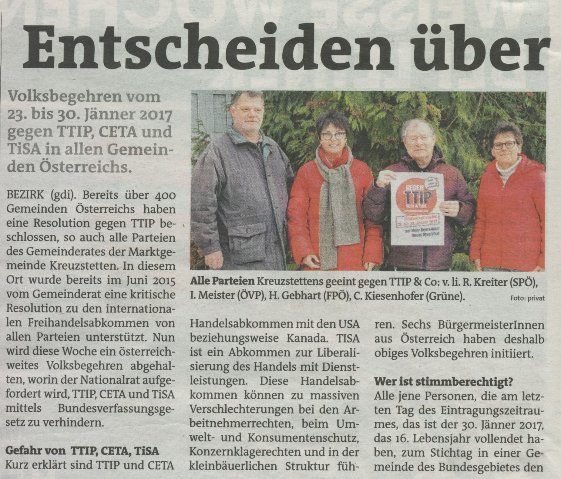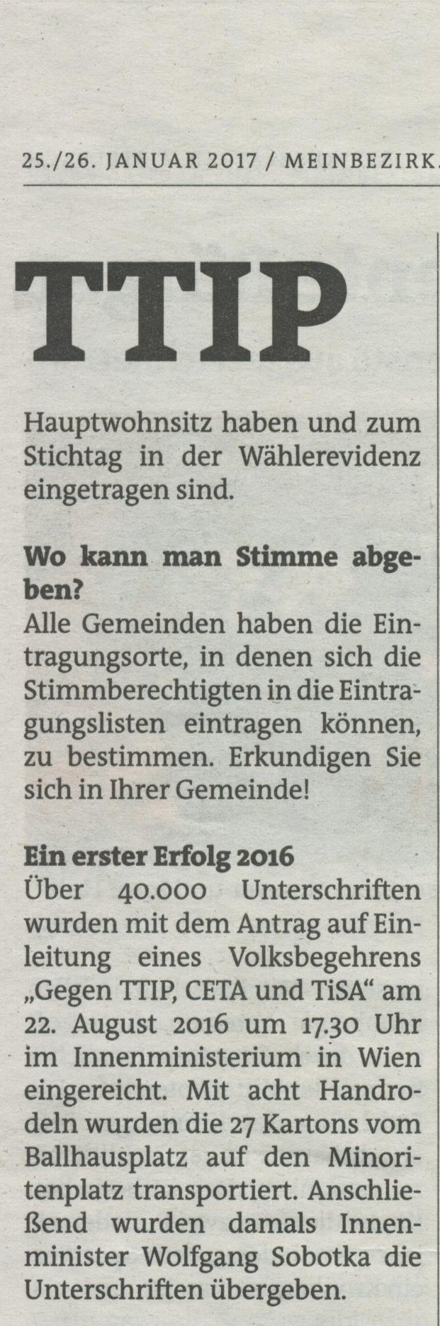 In den Bezirksblättern wurde letzte Woche ausführlich über das Volksbegehren berichtet.