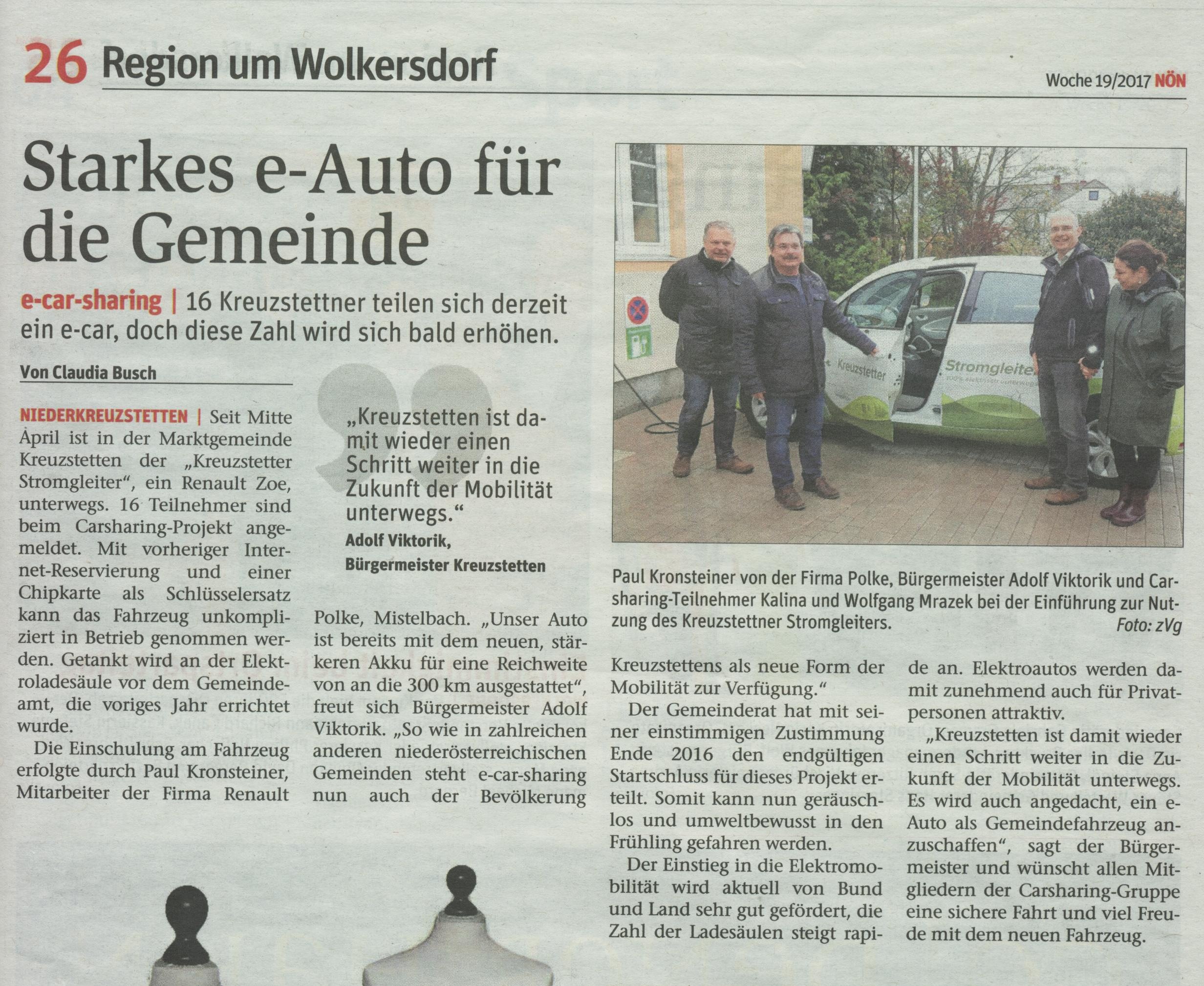 Auf der Gemeinde-HP gibt es bereits eine Rubrik fürs Carsharing http://www.kreuzstetten.at/Elektro-Mobilitaet, danke an Andi Gröger.