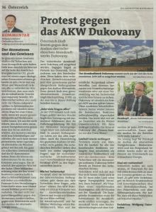 Bei der grenzüberschreitenden Umweltverträglichkeitsprüfung zum Ausbau des tschechischen Atomkraftwerks Dukovany hat es eine gemeinsame Stellungnahme der Bundesländer gegeben. Nähere Information dazu finden Sie im Artikel der Bezirksblätter Mistelbach vom 18. Jänner.
