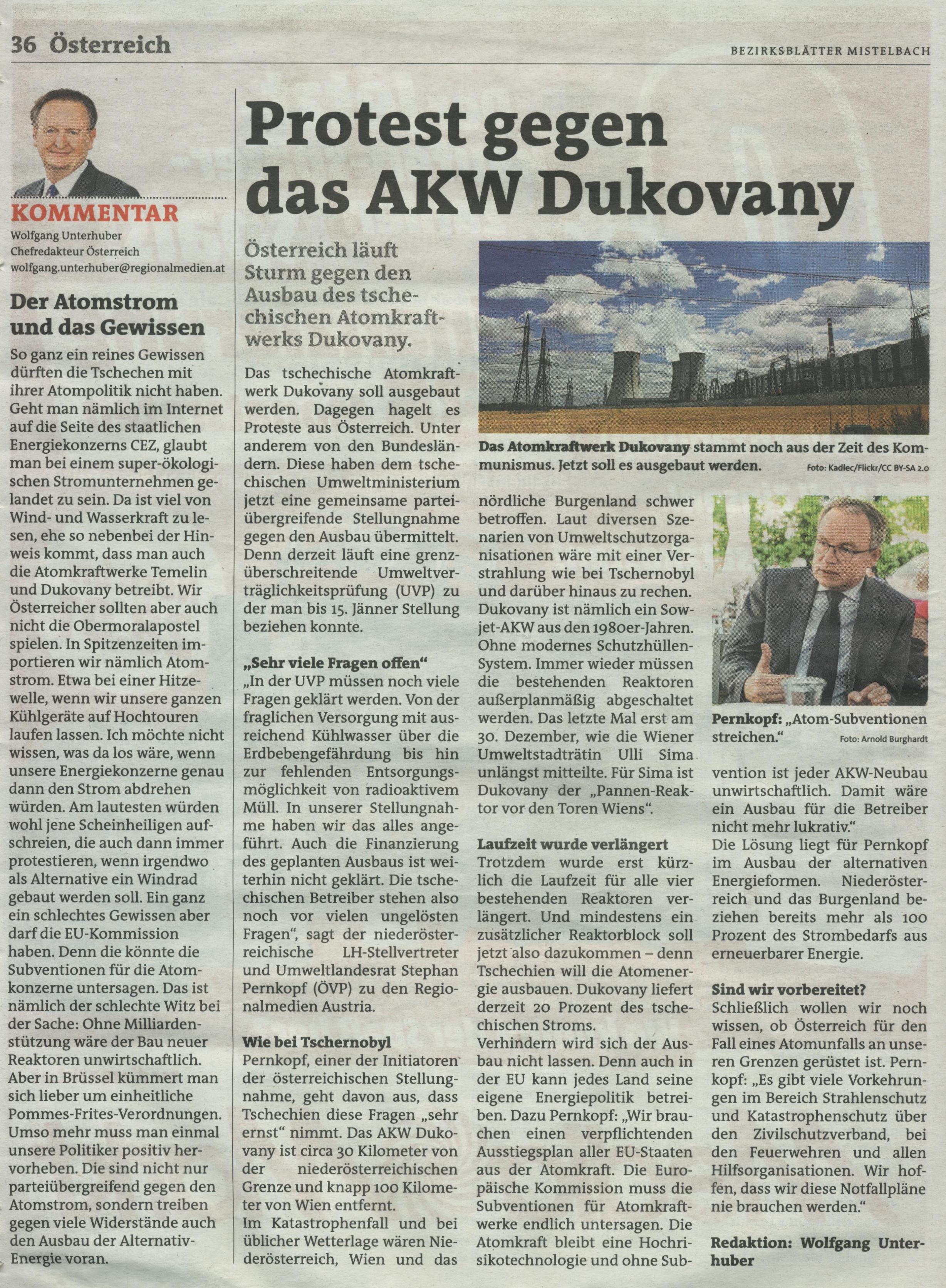 Bezirksblätter 17. Jänner 2018 Protest gegen das AKW Dukovany