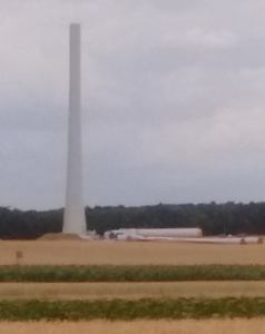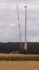 Bei dieser Anlage hätte am Baustellentag der Rotorkranz montiert werden sollen; durch den starken Wind war dies leider nicht möglich: die Säule schwankt im Wind bis zu 1,5 m in beide Richtungen. Hier der Bericht von der Montage ein paar Tage später https://www.wksimonsfeld.at/deutsch/unternehmen/news/erste-anlage-im-windpark-kreuzstetten-ist-montiert.html