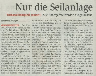 Die NÖN berichtet über die Turnsaalsanierung, in der Gemeindezeitung schreibt der Bürgermeister über den Umbau. Ich kann nur außen fotografieren, Fotos von innen gibt es leider keine. Wer (so wie ich) neugierig ist, was sich innen getan hat, den kann ich nur auf den Tag der offenen Tür in der Volksschule verweisen https://www.kreuzstetten.at/Tag_der_offenen_Tuer (9. November, von 8:10 – 11:45 Uhr) und im Namen der Schulleitung dazu herzlich einladen!