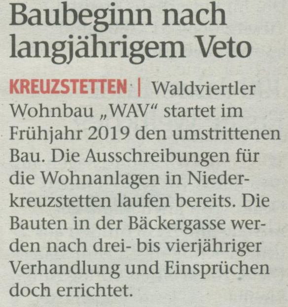 NÖN 7. November 2018 WAV Bäckergasse Baubeginn
