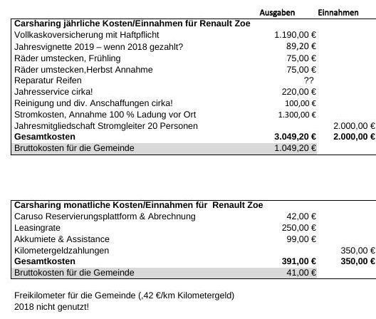 Kostenabrechnung Carsharing Kreuzstetten 2018