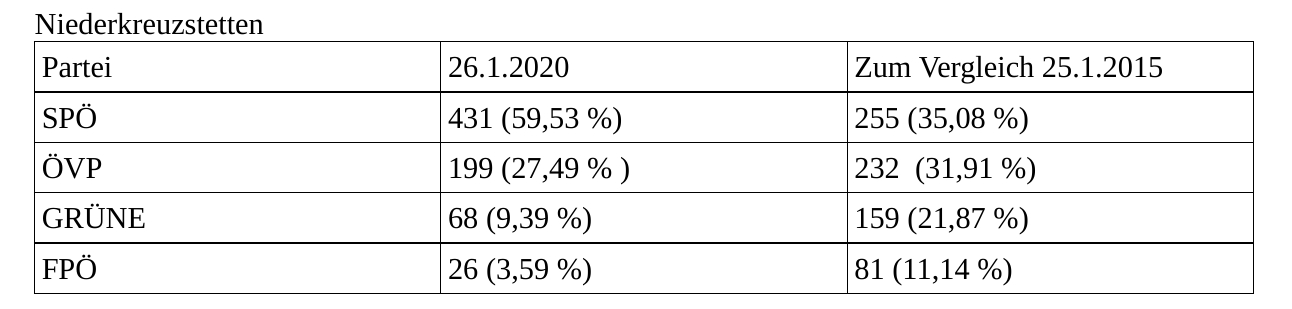 Niederkreuzstetten GR-Wahl 2020