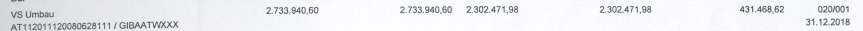 Auszug aus dem Rechnungsabschluss 2018: die Kredite wurden auf einem Sparbuch „zwischengeparkt“: