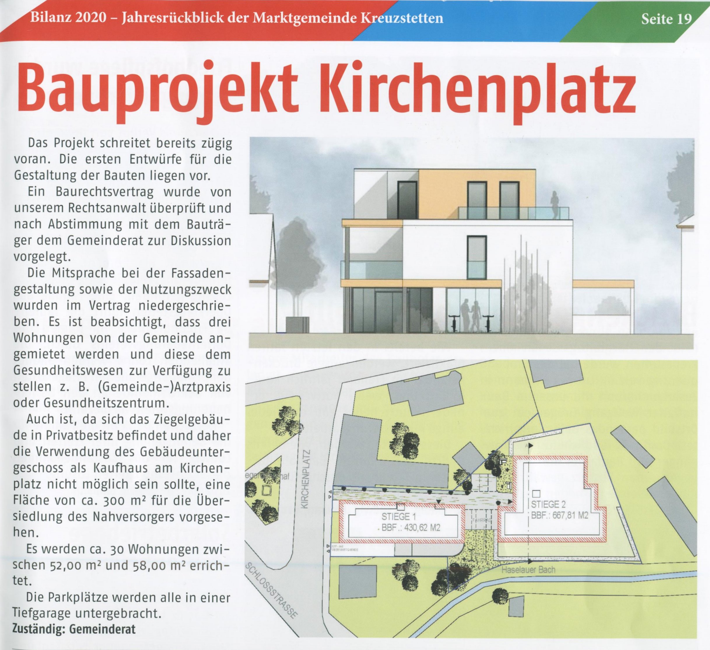 Bauprojekt Kirchenplatz Jahresrückblick Bgm. 2020