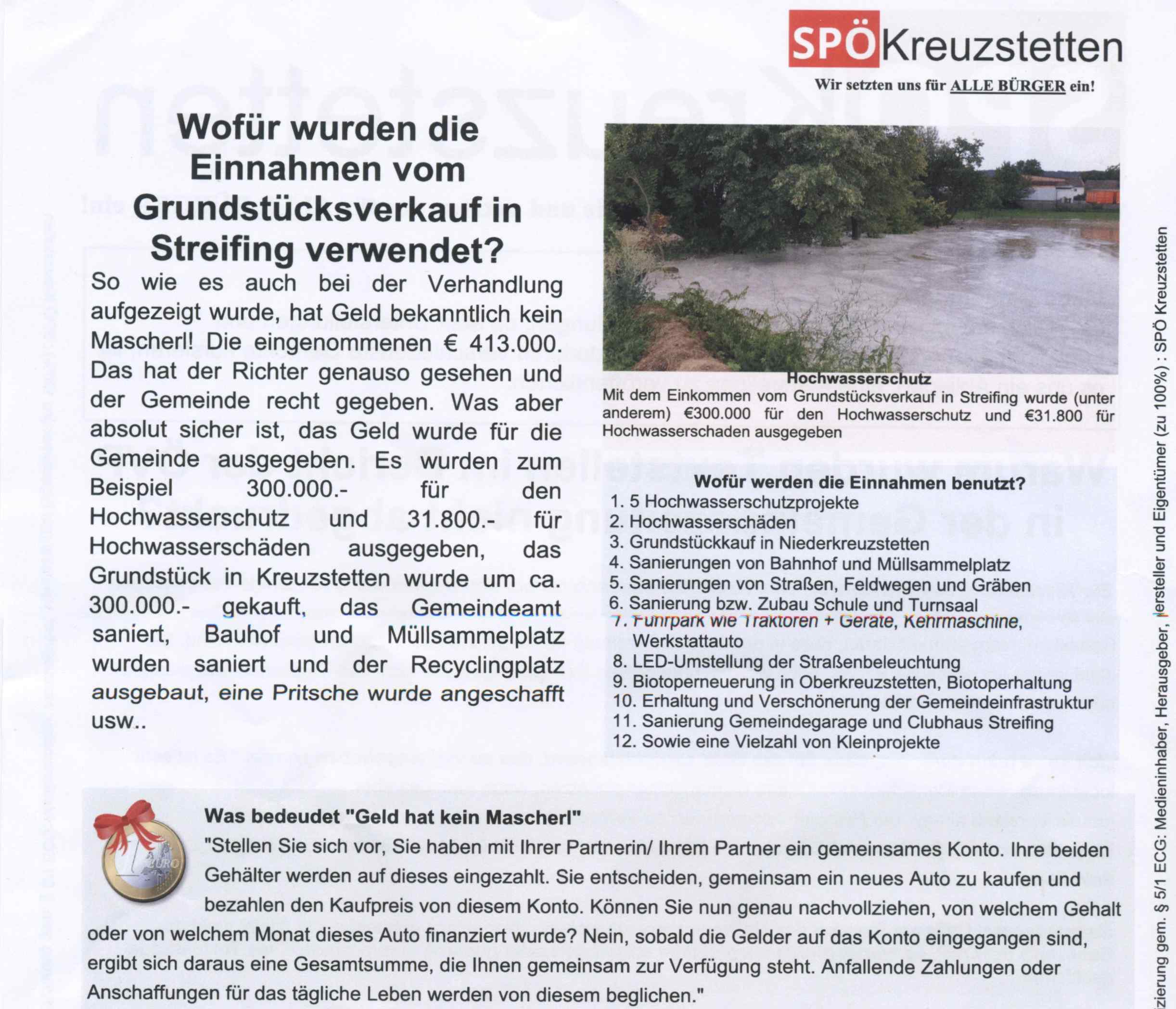 Flugblatt SPÖ Einnahmen Grundstücksverkauf