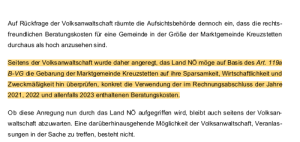 Die angefallenen Kosten sind also nicht nur für mich unerklärlich! Summe der absurden „Beratungskosten“ lt. den bisherigen REAB: 2024 17.714 € + 2023 149.000 € + 2022 72.100 € + 2021 127.000 € = 365.814 €; zum Vergleich: „verschwundener“ Grundstückserlös 413.000 €, Rechtsanwaltskosten für die Nahwärme-Restrukturierung 2016-2018 269.000 €.