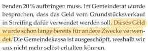 Spannend: auch nach mehreren Jahren tauchen neue Belege zum Verbleib der Einnahmen aus dem Grundstücksverkauf in Streifing 2018 und den absurden Rechtsanwalts-„Beratungskosten“ auf: