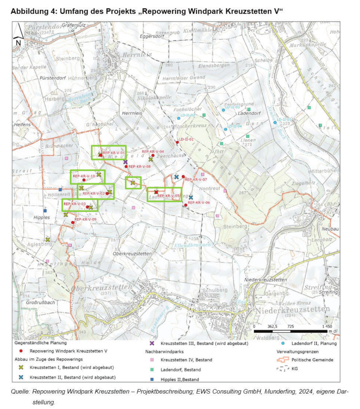 Ausschnitt aus dem Eräuterungsbericht, Standort neue Windräder