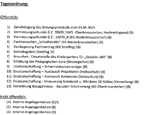 TOP 13: nur Info, weil Begutachtung Raumordnung von 26.5. bis 7.7.2025, soll in der nächsten GR-Sitzung am 14. 15. Juli beschlossen werden; zur Info: Oberkreuzstetten, Schottenweg 10