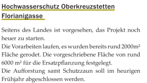 Vorab: da kenne ich mich nicht aus, kann dazu auch nicht viel sagen – und anders als bei den Bauprojekten in der Bäckergasse gehe ich dort nicht täglich vorbei. Förderungen/Aufwendungen ab 2021: Hochwasserschutz Aktualisierung 16. Juni 2024