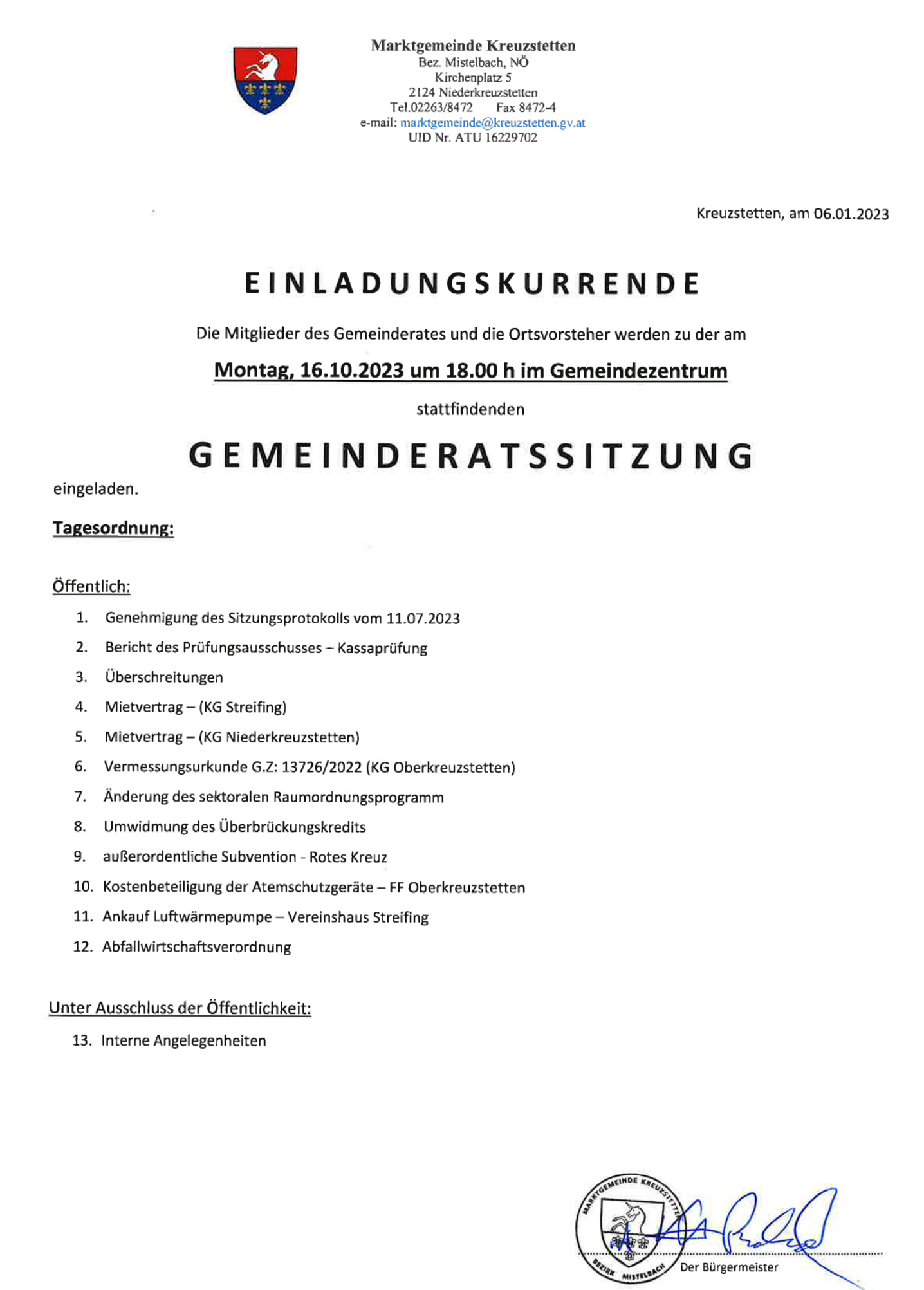 Tagesordnung GR-Sitzung 16.10.23